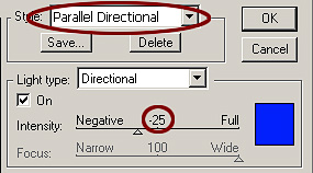 Looking better already, you can see things more clearly, but it’s missing something, is it not? Now what you want to do (but not with all renders) is go to “Filter, Render, Lighting Effects,” and then select”Parallel Direction,” with an intensity of -25: