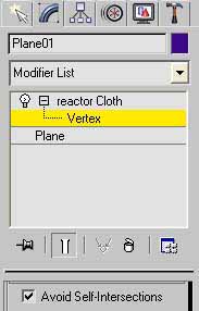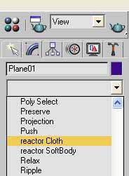 13-now we are pretty done with our scene, lets now add reactor cloth modifier to our curtain, ok with curtain selected go to “Modify” panel from dropdown menu selected “reactor cloth” as image below.