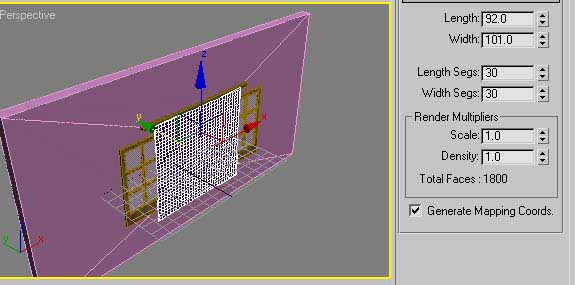 9-ok now fix your newly created plane and name it “curtain” bring it almost near to hang but don’t touch because when we play reactor it will give use interpenetration error. by the way I have add cloth material to my plane to show it as realistic. as image illustrated below.
