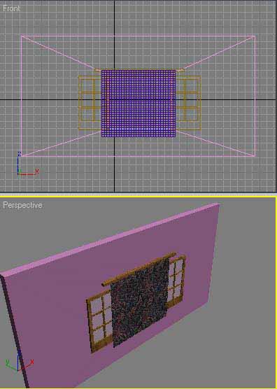 7-i have created window for the hole and the curtain hang you you should use these settings to create curtain hang for the scene as image below.