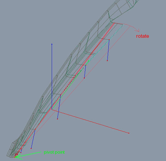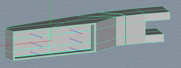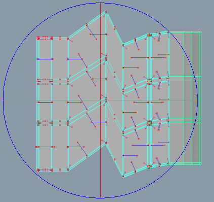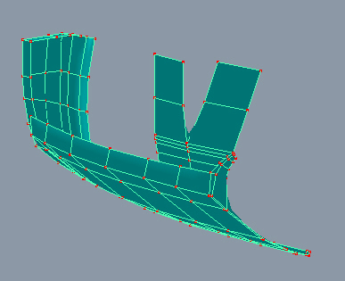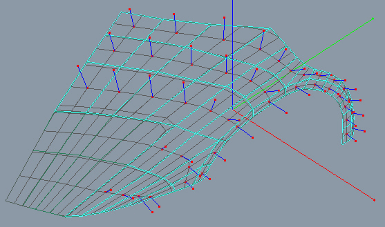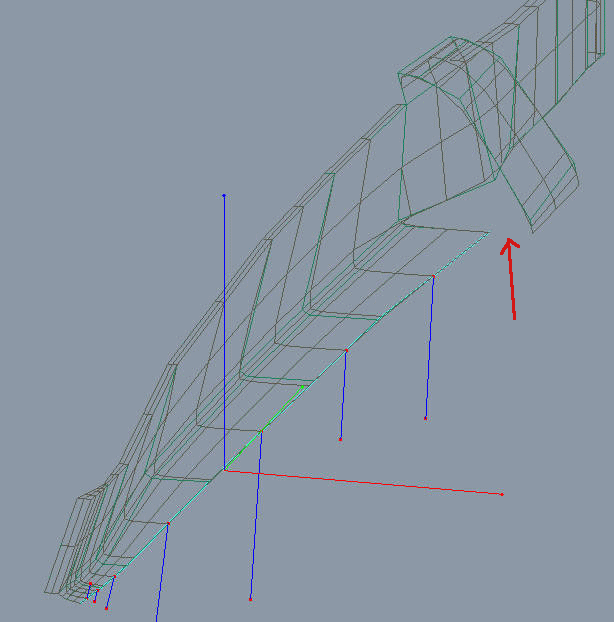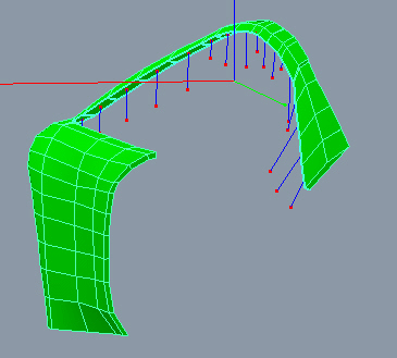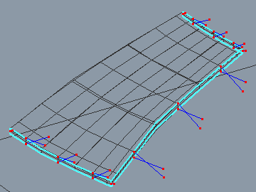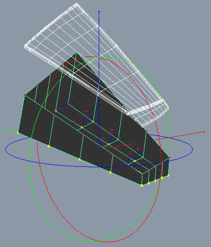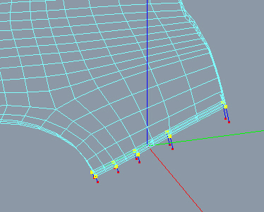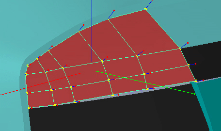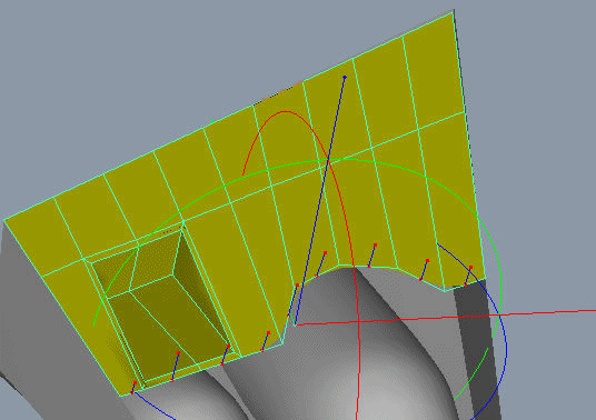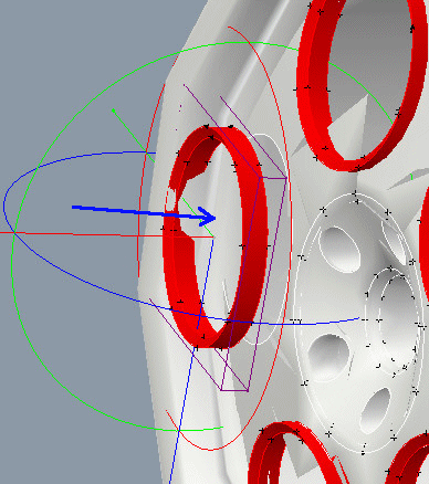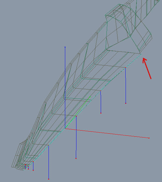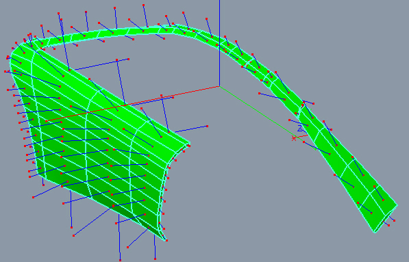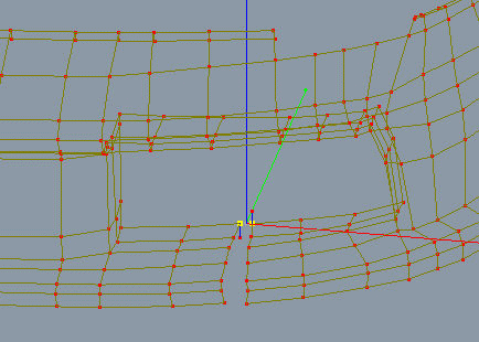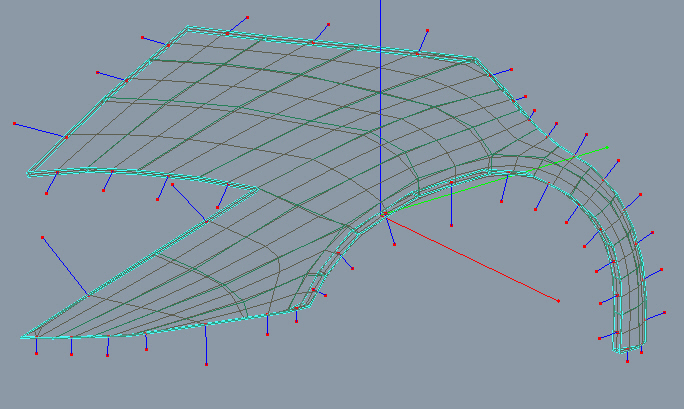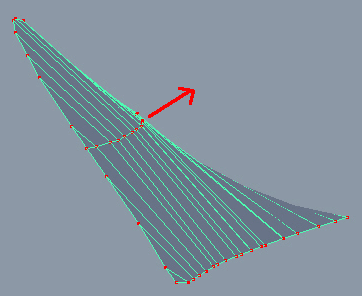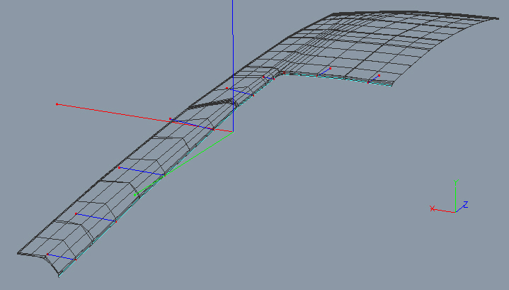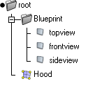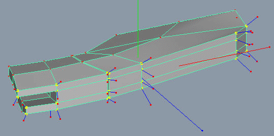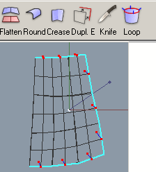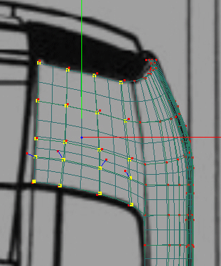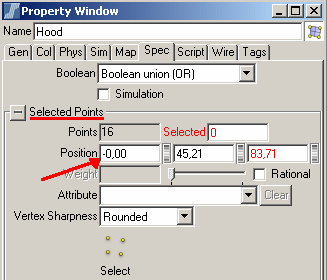 Click on the Hood object in the Select window and make sure you are in Point Edit mode (use the compass menu, or the Edit drop down menu to switch edit modes). The Hood is displayed as a grid with red dots. The red dots are points in the SDS rectangle you can move around to change the shape. Note that when you click such a dot, it changes to a yellow color. Also you see a coordinate handle appear. You can use these to move points around.