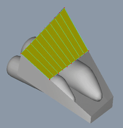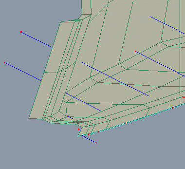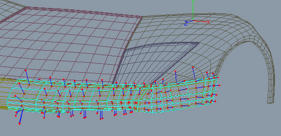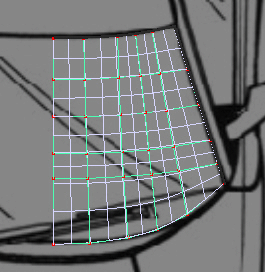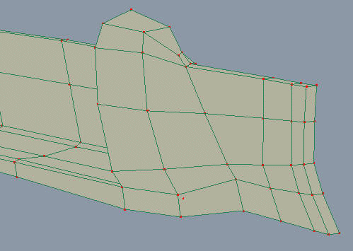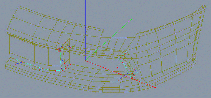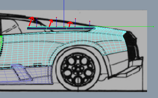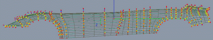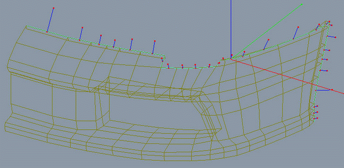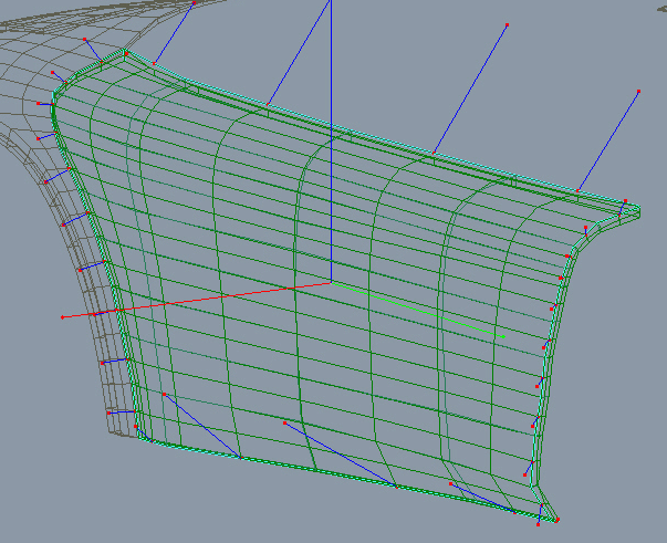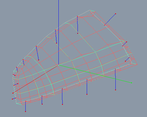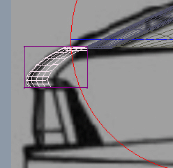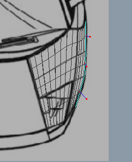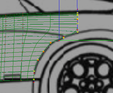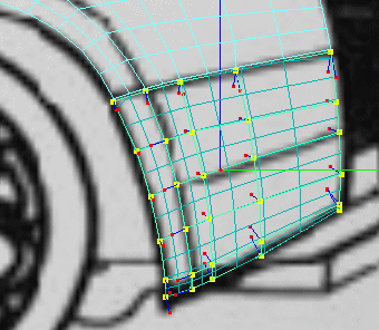 Now comes the tricky part: to make the points also match the outlines when seen from the other views! This is the point when you have to be sure that the reference images are properly aligned! First take a side view and move complete rows of points, to make them match the outline. This take just a little practice. Then move to a front view and repeat the matching process. As said before, try to keep the hood as smooth as possible, to prevent render errors later on.