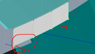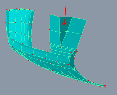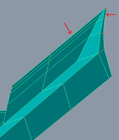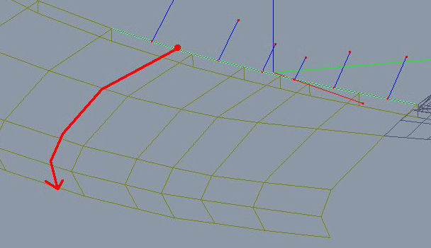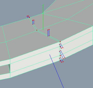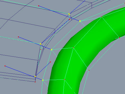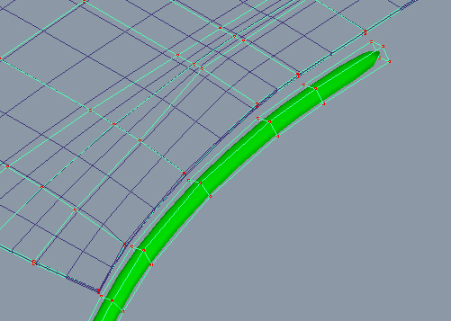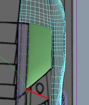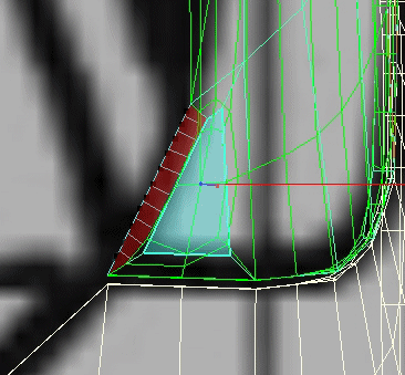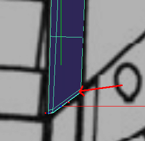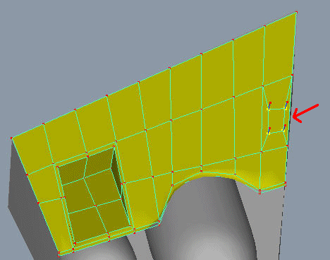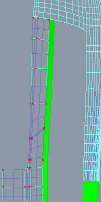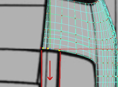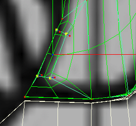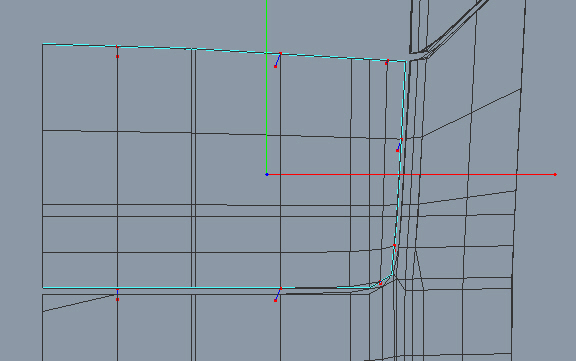 Now again it’s a matter of moving the points around. One area requires special attention. Switch back to Edge Edit mode and select the edge as shown in the next image: