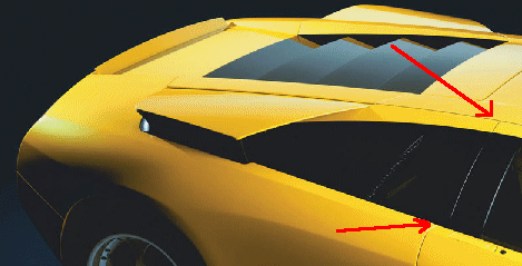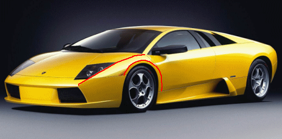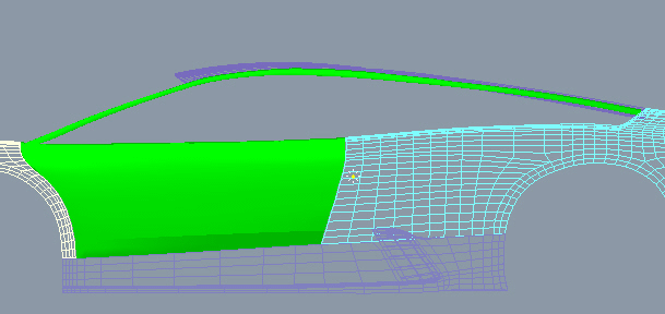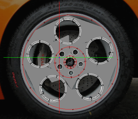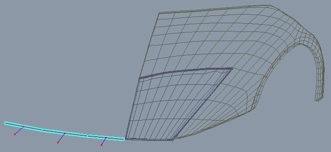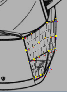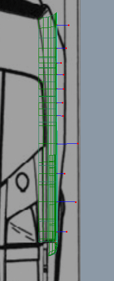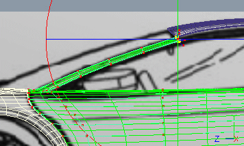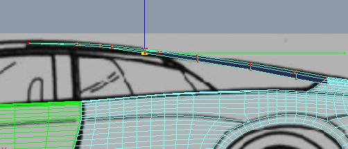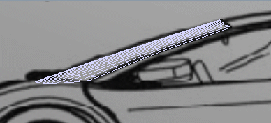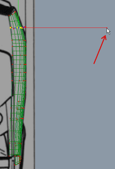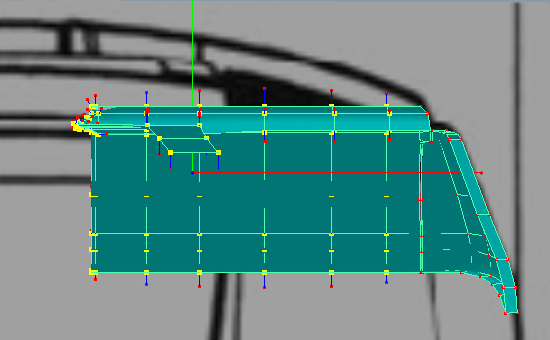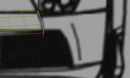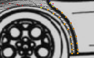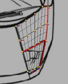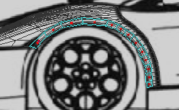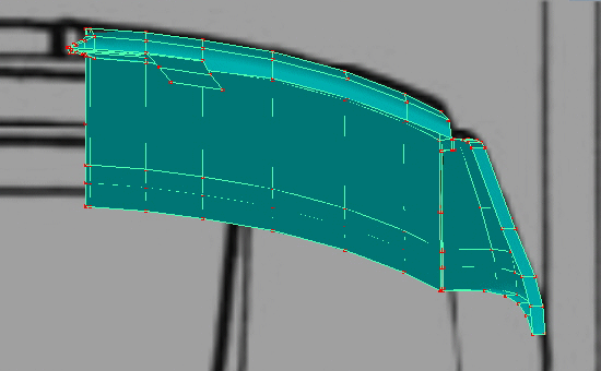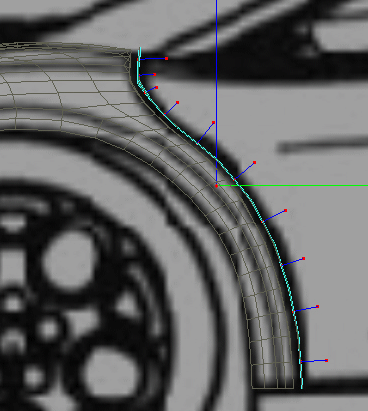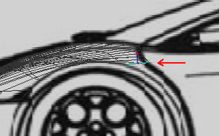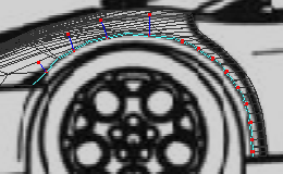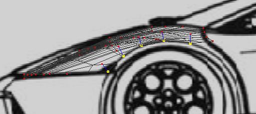 Now simply drag and move the points to match the right side outline of the hood. It will take some time and effort to get the points just in the right position. It is very important that you keep the lines between dots as smooth as possible. This will give you the nicest renders in the end. After some point editing you get something like this: