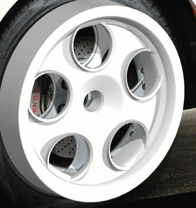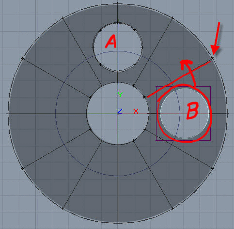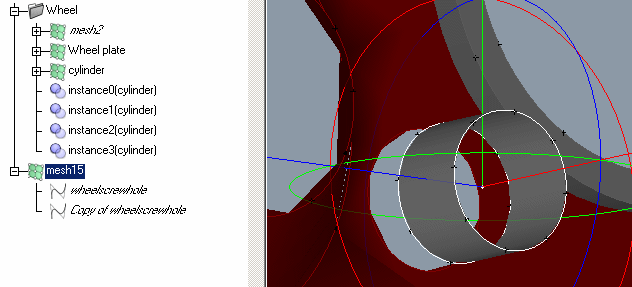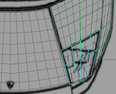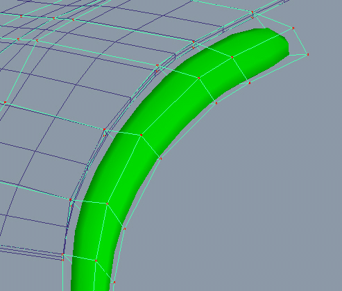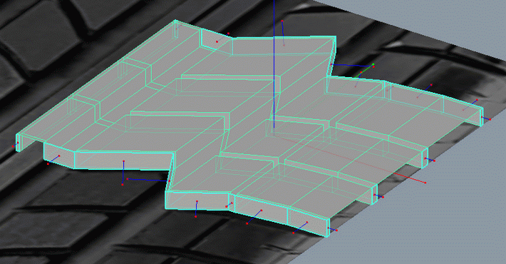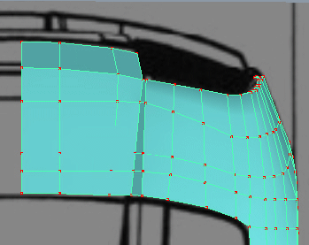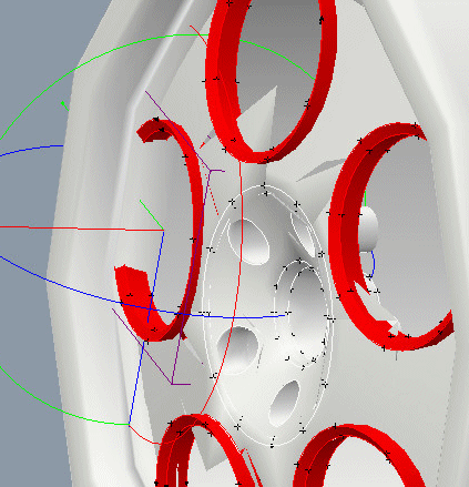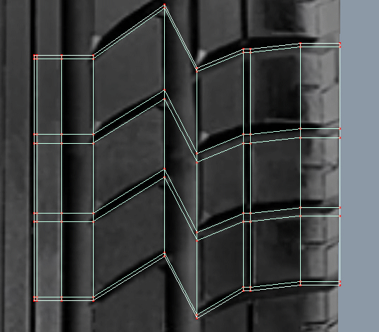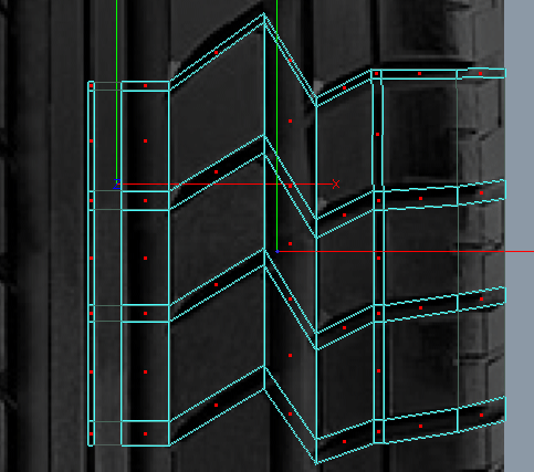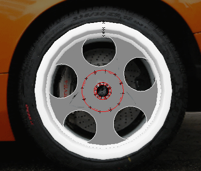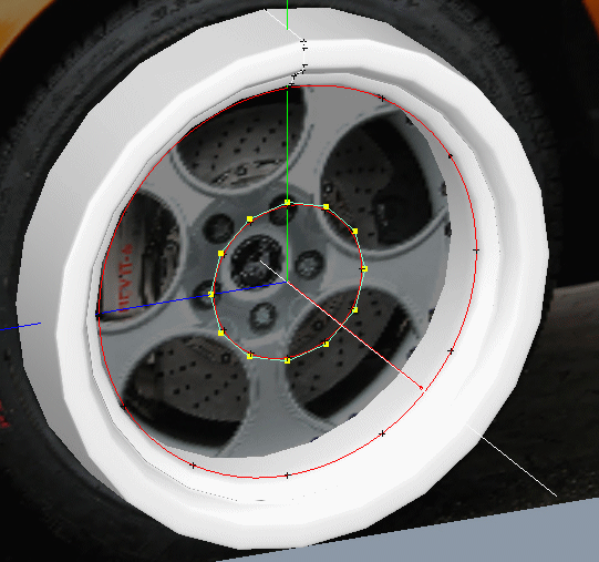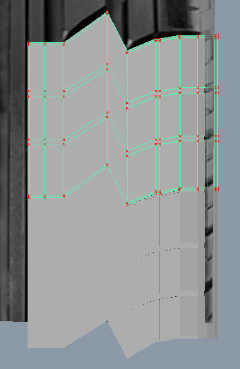 Now for some final touches. First switch to Edge Edit mode and select all inner edges of the wheel area. Press and hold the Ctrl key and move the mouse down just a little, to create new faces again. Switch back to Point Edit mode to make necessary adjustments.
