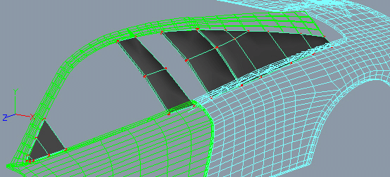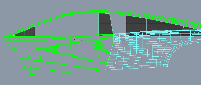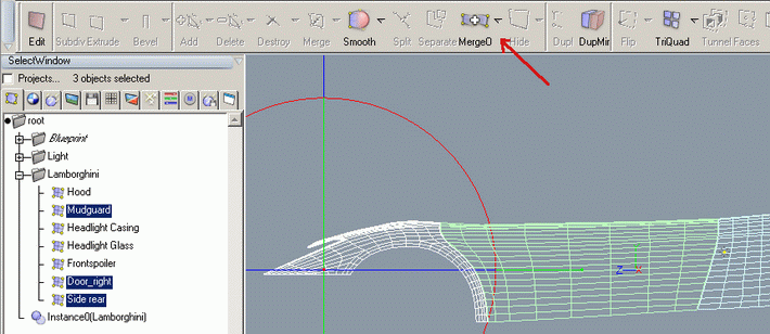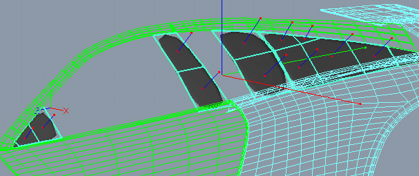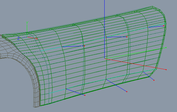 When done, we are ready for the next step: editing the edges of the Hood. So, take a top view and switch to Edge Edit mode: