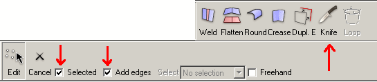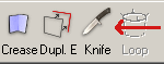 We need to select all outer edges, except the left side. An easy way to do this is to click the right side middle edge and click the Loop tool icon (see next screenshot). Then click the Loop tool icon four times, and so add the required edges to your selection. Then open the Property window, click the Spec tab and in the Selected Edges section, set the Edge Sharpness to ‘Free‘.