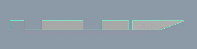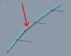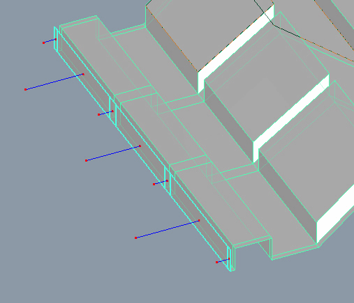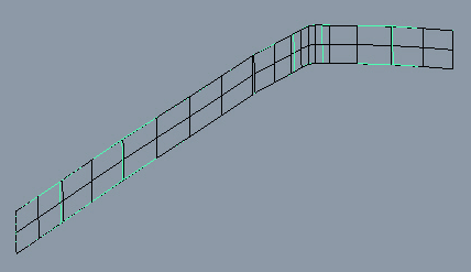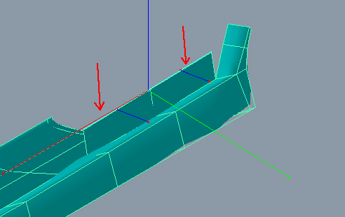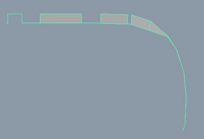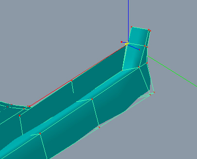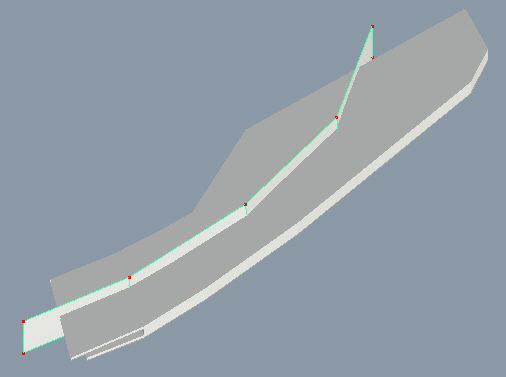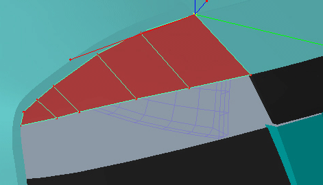 Now go in Edge Edit mode and select the upper edges of the remaining faces. Hover the mouse pointer over a selected edge, so it changes shape (pointed cross). Press and hold the Ctrl key and drag the mouse to the right. This creates new faces, which will form the top of the Mudguard.