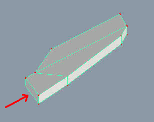 Take a front view and hover the mouse pointer over a selected edge. Note that the shape of the pointer changes into a small pointed cross. Press and hold the Ctrl button and drag the selected edges down a bit. This creates a small beveled side on the hood, giving it some depth.