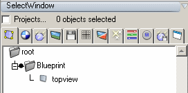 Now in the Select window, directly under the Root level, create a new level (press Shift + L) and rename this level to ‘Blueprint‘. With the new level selected, press the Tab key, to make it the current level. You can tell it’s the current level, because there is a black dot shown left of the level icon. Now all new objects will automatically be created in the current level. If you wish to change the current level back to Root, select the Root level and press the Tab key again.