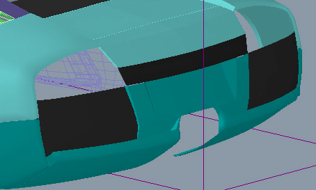 The next step is to model the headlights. Before we start modeling, we make a copy of the Mudguard object and make it Wireframe invisible. This copied object will later be used for modeling the glass of the headlight.