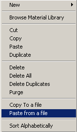 Vesa Meskanen created two car paint shaders specially for this tutorial (thanks Vesa!). Applying the shaders is easy: just select a car part and drag and drop the shader and you’re ready. You can download the shaders by clicking here. Unzip the file and load the shader in the materials tab of the Select Window via the Right Mouse pop-up menu (‘Paste from a File‘). This adds two new shaders at the bottom of the materials list, called carpaint and metal_paint. Also it adds a sky, which can be used with a self illuminating dome over the scene.
