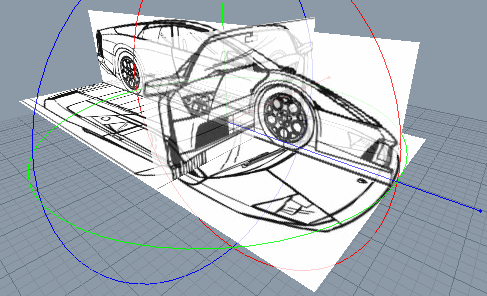 Now these three rectangles need to be carefully positioned, like shown in the next screenshot. It’s a good idea to switch to wire display mode first, to make sure the rectangles are properly aligned and not sticking out somewhere. When the images are not properly aligned you will run into troubles while modeling: