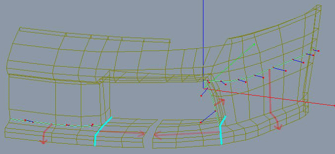 To get the wheel area smooth we need to split the edges into smaller pieces. This gives more control over the points in this area. While in top view, select the edges on the right side of the Mudguard (see above image on right side) and use the Split tool (default value of 1 split will do).
