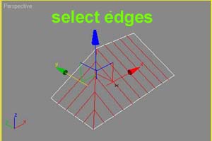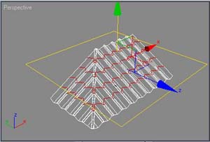 Vertex subobject, select the vertexes as shown and move them down. Now we have wave on tiles.