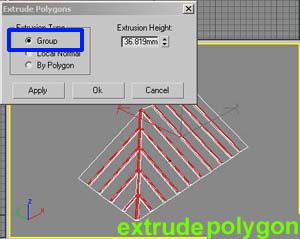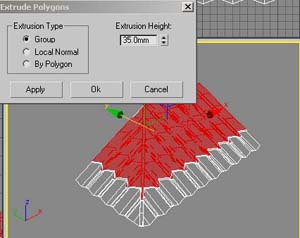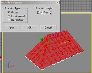 extrude selected polygon to give the thickness of roof tiles