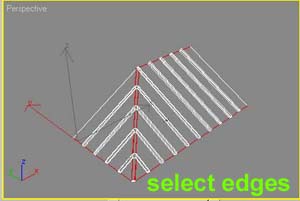 Select and connect edges again (see below). This is for making more segments on roof to create waves on the tiles in next step.