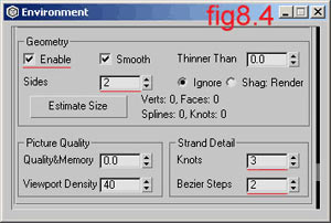 Go up in the field Geometry. Check Enable, make it 2 side and type for Knots – 3 and Bezier steps – 2. (fig. 8.4)