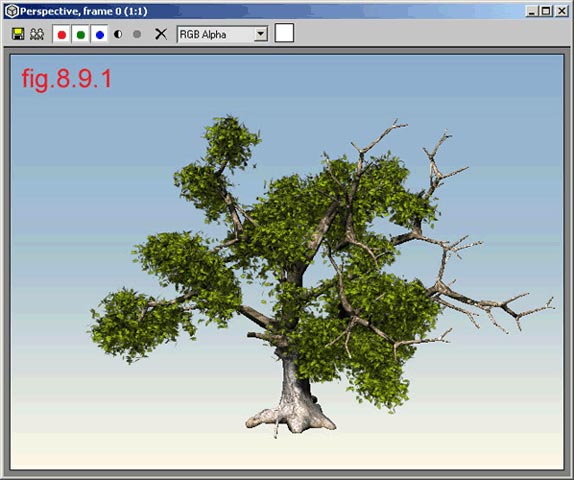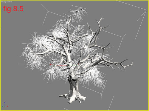 Then you can convert the geometry to an Editable Mesh but this will slow down the work on the scene. If you want to animate the tree don’t convert it. The result of this is shown on fig. 8.8
