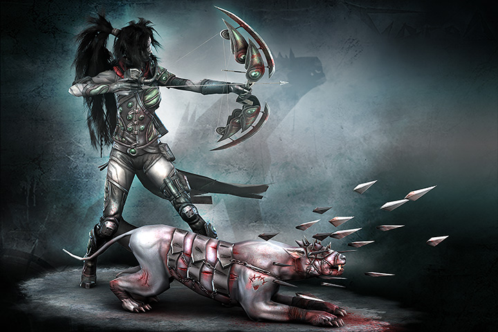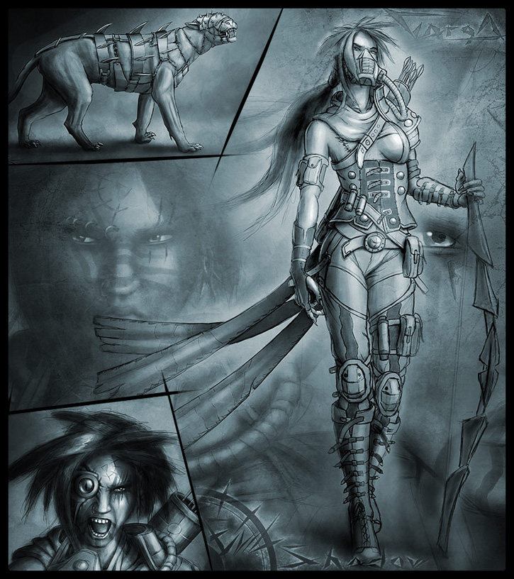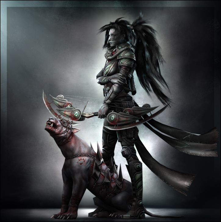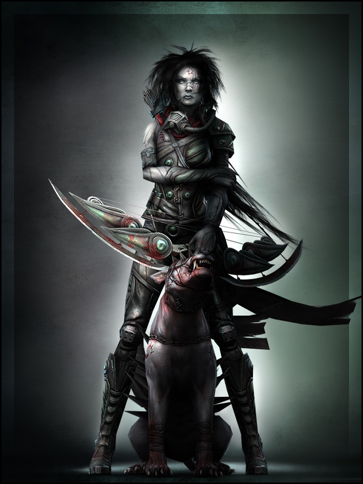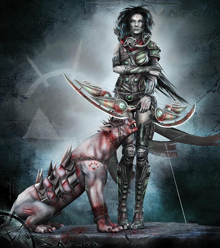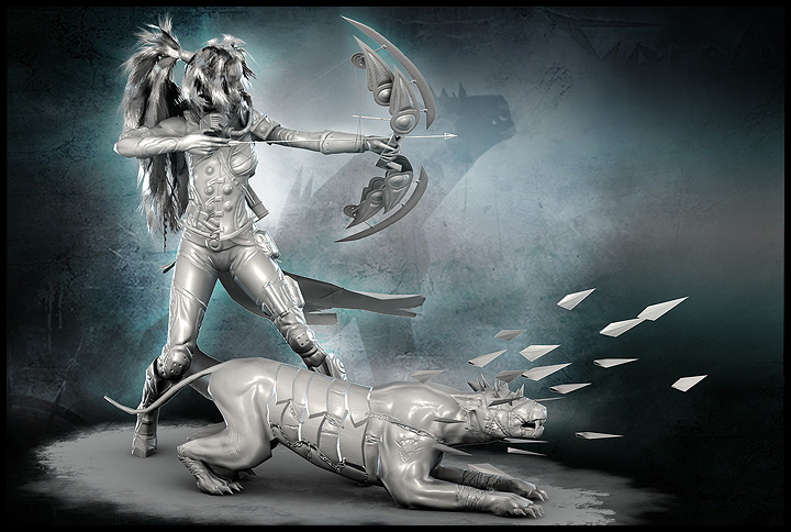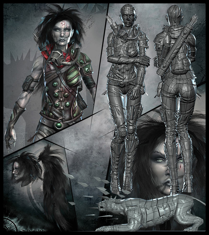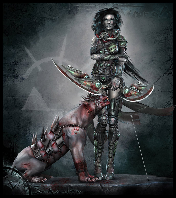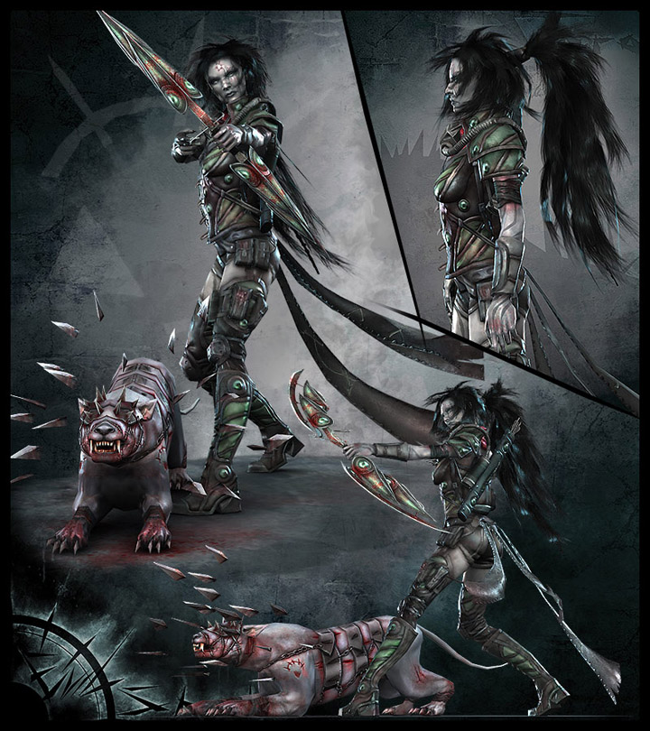 This character is my entry for Dominance War II competition ( www.dominancewar.com ). The main theme of the competition was to design a game (low-poly) character and were some rules (limitations) about the specs we could use for geometry and textures( main character will not exceed 6000 triangles , 1000 more triangles for weapons/gear and we could use a pet also but the budget will come from main character; for textures we could use 1×2048 square for main character + pet, if any , and another 1×1024 square for weapons/detachable gear; diffuse, specular, normal,bump,opacity ,glow,reflection maps were allowed).