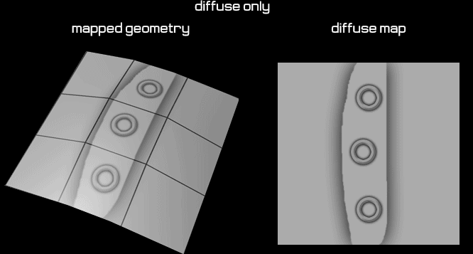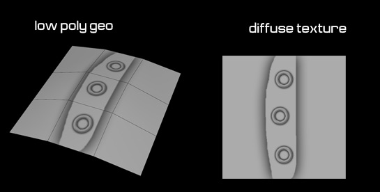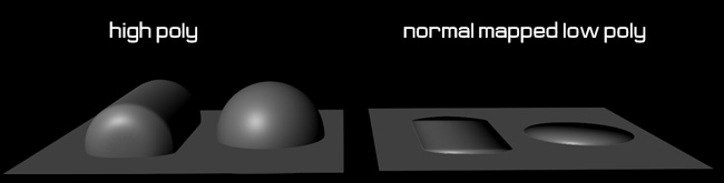 All is working well and i will export the final level to compute the normal map with maya/3dsmax or other program that will use raytracing for the process and will assure proper display of the normal map in the final engine but if i was not too careful when detailing i will encounter something like in the images below ( the effect was exaggerated here so i can make a point )