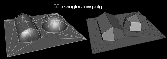 …i could use a single quad plane for the low poly but the result will not represent the high version very good when viewed from above they seem too look identical