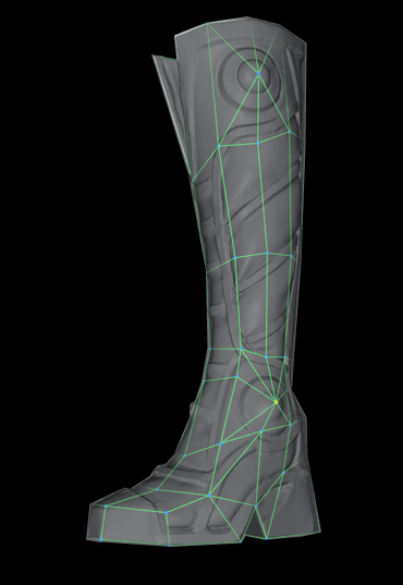 Also,you have to avoid modeling complicated shape details that will be hard to enclose within a low poly cage later on because they will "eat" too many polygons to be displayed properly ,though you might be tempted to go crazy and add lots of detail like shown below.