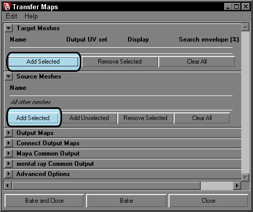 ( if you do not add any geometry to the Source Meshes then maya will sample all the geo in the scene for the process )