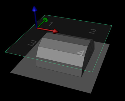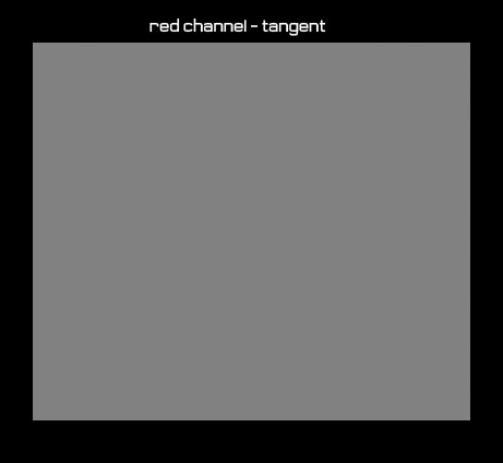 This time the red channel is flat at 128 ( like green channel was before ) since all the faces in the high are now parallel with the red arrow (and when the normals are decomposed the tangent components will be zero mapped to 128); the green channel ( binormal ) will look similar to the red channel before (but rotated 90 degrees CCW) and the blue channel looks the same as before but rotated 90 deg.
