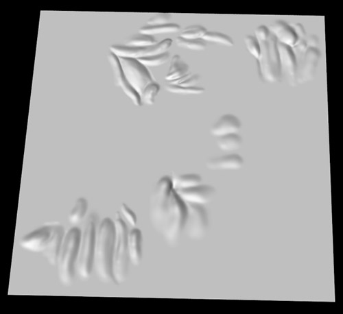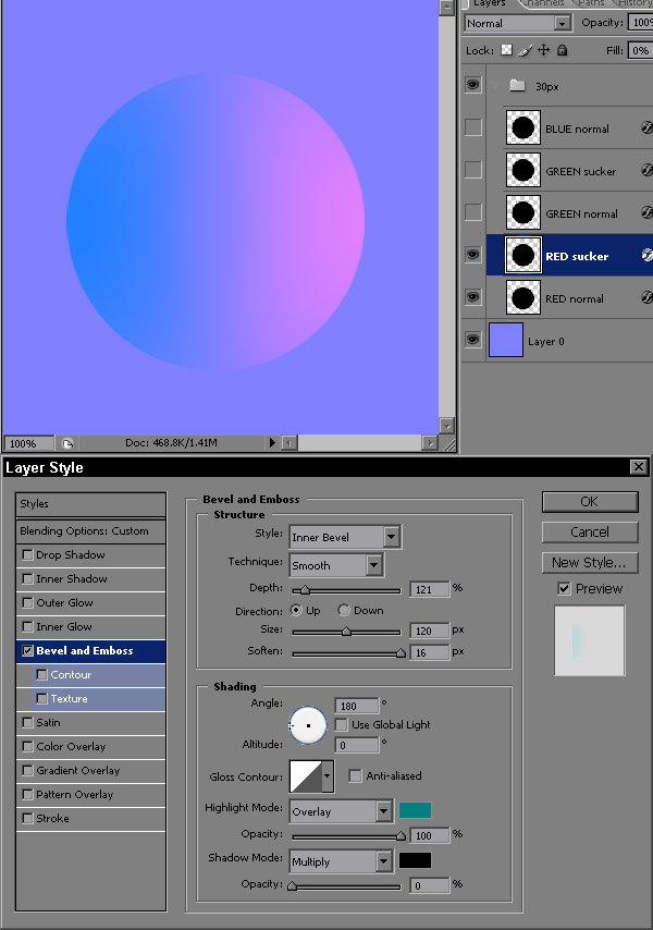 The fun part is that now that you have the layer styles in place you can just go and adjust the size in pixels for the effect and play with all the other attributes within bevel and emboss, if you want to "carve" detail you just have to change the direction in the bevel and emboss from up to down for the red and green layer styles, you can blur the selections with gaussian blur to achieve smoother results.You can duplicate this set and alter the attributes again … and do all kind of crazy stuff, its up to you to experiment.You can even place the layer sets on top of other normal maps and will display ok ( just run nvidia normal map filter with the normalize option on the final texture).