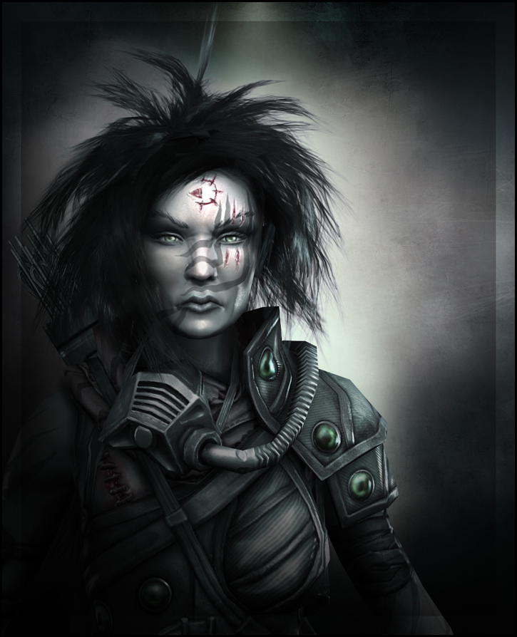When i sculpted the torso for Varga i forgot to sculpt the scar of the missing breast and later on when i realized that i had some weird problems with the scenes and could not load them so i just sculpted a scar on a new plane and overlaid it on top