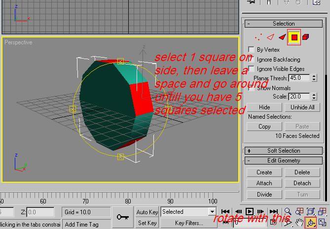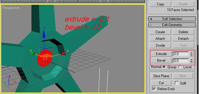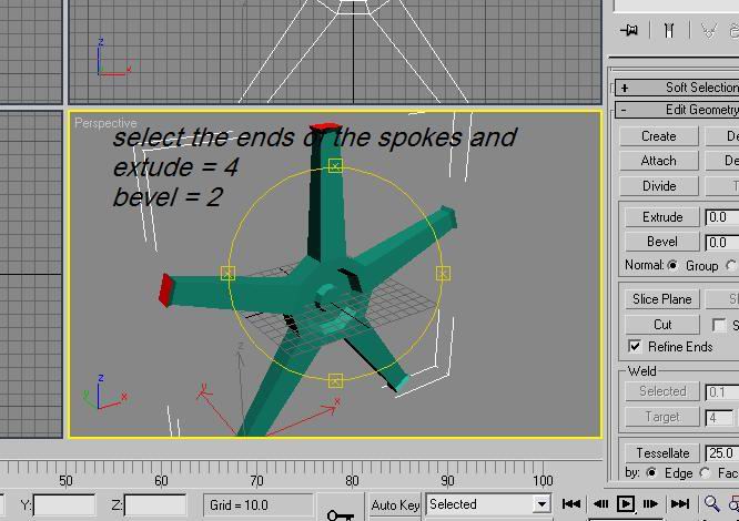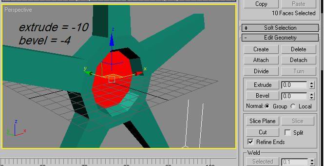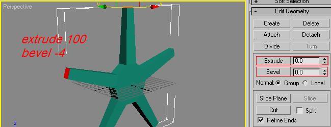 Then scroll down the editable mesh menu and tyoe 100 into extrude THEN -4 into bevel