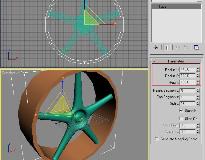Make a tube with a radius1 of 140 a radius 2 of 150 and height as 100