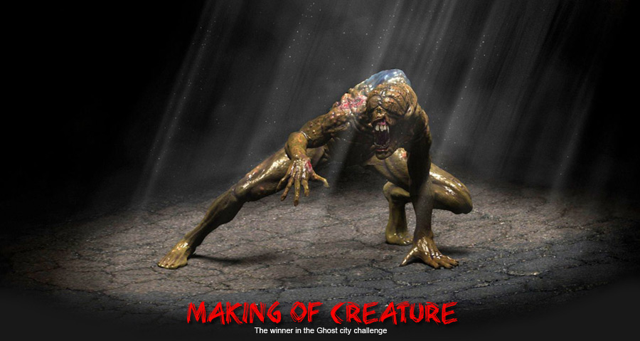 Hi my name is Tomas Ivankowski and i’m a freelance artist specialising in creating creature and character 3d models. On this occasion I would like to show you how I made my Ghost City entry a.k.a Freddy and give a big thumbs up for the organizers of the challenge and all that took part. Thanks guys it was fun!! :] To create Freddy I used Zbrush 3.1. and a bit of Photoshop at the final stage for some tweaks and corrections. After doing a couple of fast sketches I started playing around with the zsphere feature. I tried to get the base as simple as possible to make it very easy in the first couple of subdivision levels which for me are the most important in the whole creation process. After acquiring the wanted shape of my adaptive skin I started to sculpt. I like to work on a vortex by vortex level (on first 4 or 5 sub levels ) to get everything right, it takes a lot of time but gives me more confidence that the model is going in the right direction. I gave the head an extra sub level to get more detail out of it as it would be the ‘center’ of my work and the bit that would attract the most attention. As the theme of the competition was a nuclear disaster I tried to stay as close to real life mutations as possible. Body and limp deformation, skin burns, blisters and open wounds where what came into my mind. I used a lot of real-life reference from photos which consisted of burns, skin sicknesses, cuts and things like that. It wasn’t a pretty site. The inner mouth area was done strictly with the use of zspheres, the teeth took the most time to finish whilst the tongue was done in pretty much a couple of minutes. Textures for these subtools where made out of reference photos like rotten teeth and infected gums. For the body and the head I used a very simple texture as I’m not very good in this section of creating. Couple of basic colors mixed together, simple strokes and couple of ref photos for the wounds and blisters. At this point I must say that I just love the new poly painting feature, it makes it much more easier for creating the colored bit of you model unlike the older Projection master which was a bit… unhelpful and clumsy :]