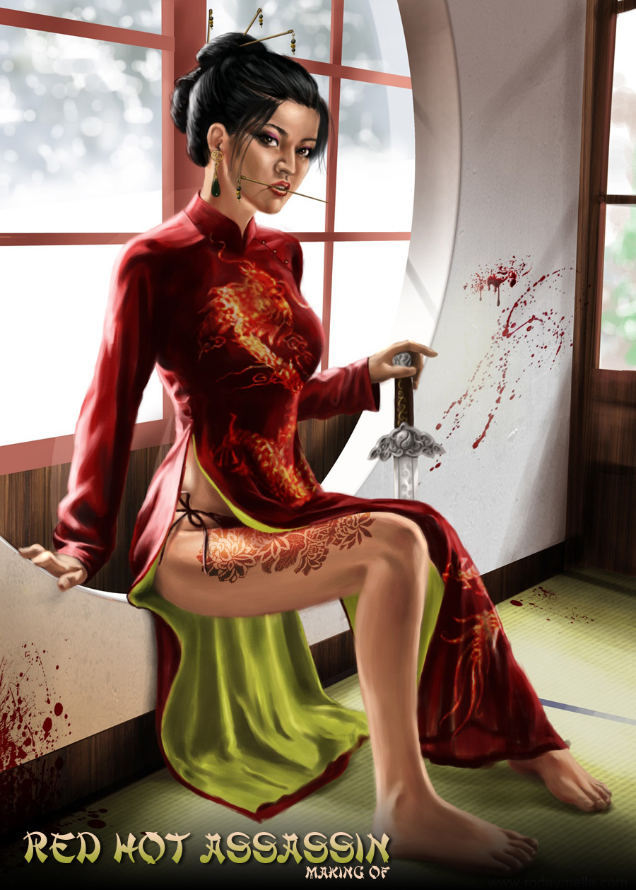 Hong Mei Li is a seductive lady with deadly skills. She can mask innocence at the same time secrecy. Clean-up after a kill is a painting done with Photoshop CS2.