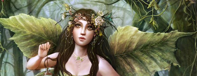 While driving through a scenic road I was in love with all the different shades of greens of the forest nearby the road. It was Spring after all and all I saw was “green”! I went home and decided to paint a fairy painting using many variations of greens for my color scheme